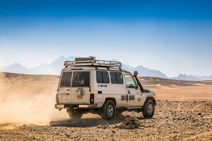Journey through the arid landscapes of the Blue Hole and Ras Abu Gallum, where adventure meets nature. Snorkel and swim among vibrant marine life, including hard and soft corals, angelfish, batfish, parrotfish, and unicorn fish. Immerse yourself in Dahab’s stunning natural surroundings on this full-day combination tour, which features snorkeling in the renowned Blue Hole and an exciting jeep ride through the desert to explore the Ras Abu Gallum Protected Reserve.